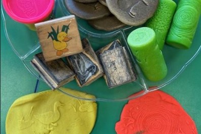 We have also had a wealth of Spring themed activities inside and outside of the classroom. Including this finger gym activity where children have been using the Spring rollers to create a picture background and then various stampers to create the foreground.